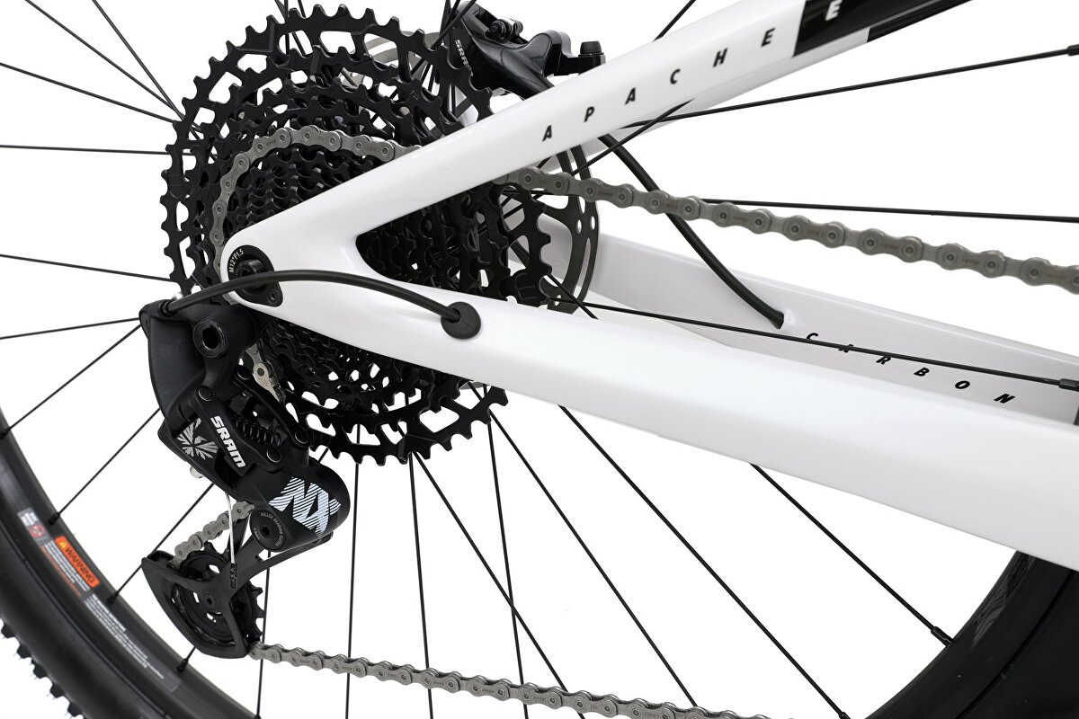 Celoodpružené jízdní kolo APACHE s koly 29", karbonovým rámem, vzduchovým podvozkem a převody 1×12 rychlostí, váš ideální parťák do terénuLehký karbonový rám Eagle s XC geometriíVzduchová vidlice ROCK SHOX Judy Gold RL a ROCK SHOX Monarch R (120/120 mm)Spolehlivé řazení Sram NX 12 speed s rozsahem kazety 454 %Kokpit RACE FACE AffectPláště s kevlarovou patkou WTB Ranger 29 x 2,25" TCS Light Fast RollingHmotnost kola 12,9 kgKarbonová sedlovkaTechnická specifikaceRÁMOVÁ SADARÁMApache Eagle Carbon Full Toray 700HLAVOVÉ SLOŽENÍintegrované taperedVIDLICE/ZDVIHvzduchová Rock Shox Judy Gold RL / 120 mmTLUMIČ/ZDVIHvzduchový Rock Shox Monarch R DebonAir HV / 120 mm, 184×44 mmPOHONPOČET PŘEVODŮ1×12, 34×11-50 zubůŘAZENÍSram SX EaglePŘEHAZOVAČKASram NX EagleKLIKYSram SX Eagle DUB, X-Sync, 34 zubůKAZETASram NX Eagle PG-1230, 11-50 zubůSTŘEDOVÉ SLOŽENÍSram DUB BSA 73 mmŘETĚZSram NX EagleKOMPONENTYŘIDÍTKARace Face Aeffect R, Rise 20 mm, 780 x 35 mmPŘEDSTAVECRace Face Aeffect 35 mmGRIPYWTB Wafel LockBRZDY (P/Z)hydraulické Sram Level TL, Sram Centerline A2 Ø180 / Ø180 mmSEDLOWTB VoltSEDLOVKAkarbonová, ø 31,6 x 400 mmZAPLETENÁ KOLAPŘEDNÍ NÁBOJWTB Speedterra i27, INT 6, pevná osa 15 x 110 mmZADNÍ NÁBOJWTB Speedterra i27, INT 6, pevná osa 12 x 148 mmRÁFKYWTB Speedterra i27, 32 děrPLÁŠTĚWTB Ranger 29 x 2,25" TCS Light Fast RollingDistributor: Cyklomax, spol. s r.o., Pardubická 504, 533 52 Srch. E-mail: info@cyklomax.cz