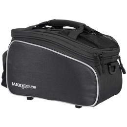 Brašna na nosič MAX1 Rackbag L MIK. Chcete nandávat/sundávat nosičovou brašnu pouhým zacvaknutím? Tak právě pro Vás je tato praktická zadní brašna určena.Specifikace:- víceúčelová brašna na nosič s nastavitelným objemem (rozepnutím horního zipu)- upínání k nosiči MIK 1.0 pouhým zacvaknutím (v případě že nemá Váš nosič tento systém - nutno doukoupit základnu).- vyztužené bočnice pro větší stabilitu nákladu- velká vnitřní kapsa + přihrádka na pláštěnku + venkovní síťka pro drobné věci- popruh pro přenášení na rameni- na víku brašny je elastická stahovatelná guma pro umístění např. větrovky- reflexní prvky viditelné 360st. + extra reflexní prvky v zadní části- možnost uchycení cyklo lahve v kapse na zadní části- součástí: pláštěnka, MIK klíč na otevření zámku k sejmutí z nosičeRozměry brašny:(délka) 32,5 cm(šířka) 15,5 cm(výška) 19 cm (měřeno v nejvyšším bodě)- objem brašny: 9,6 l- hmotnost: 850 g