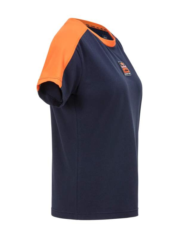 Dámské tričko z oficiální kolekce KTM Red Bull Racing. Dámské tričko KTM v tmavě modrém provedení. Týmové logo i barvy. Pohodlné na nošení Bavlna Týmové barvy Elastické Vystouplé logo KTM