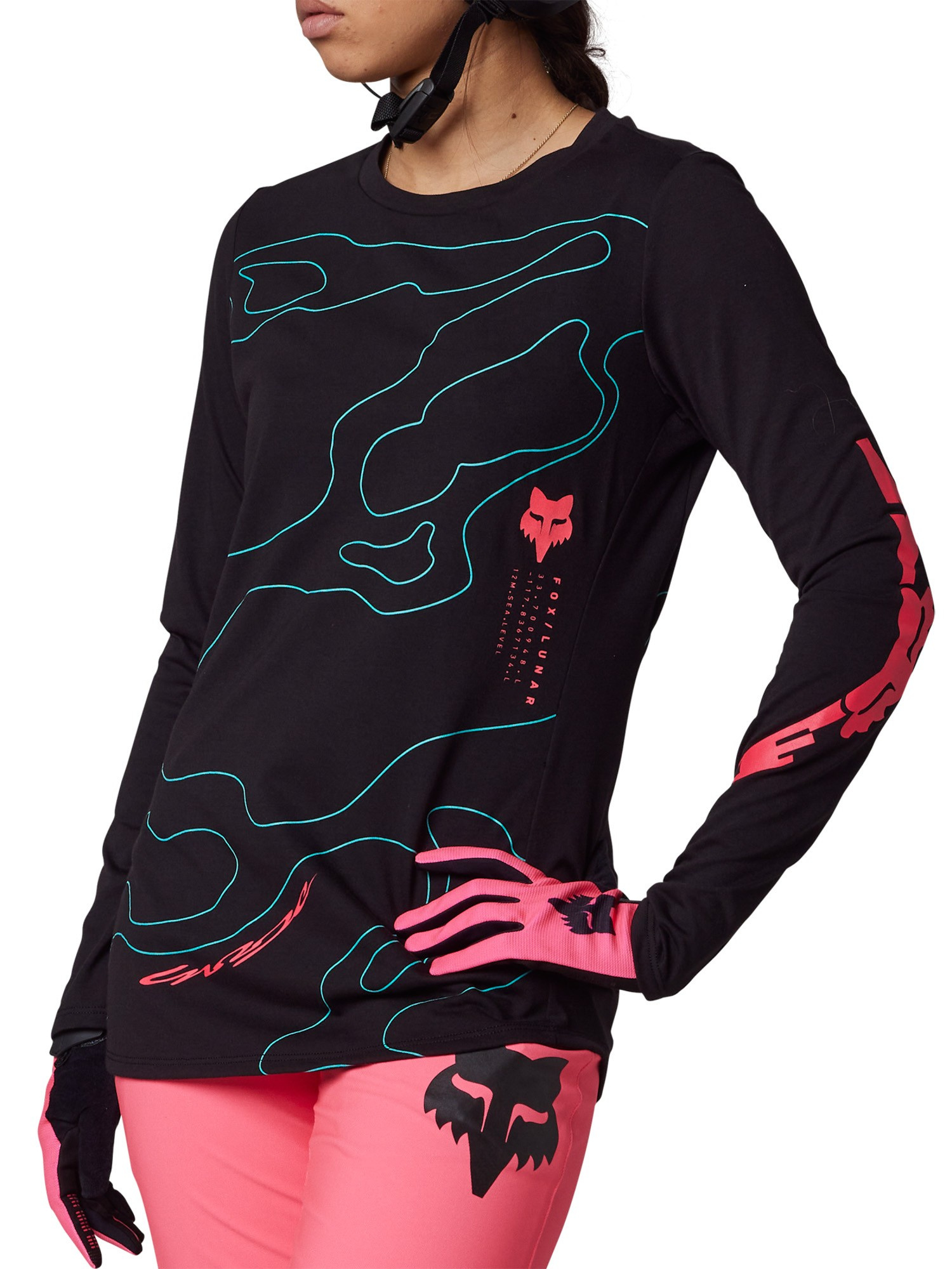 Dámský XC/Trail/Allmountain dres v pohodlném střihu s dlouhými rukávy a prodlouženými zády z TruDri materiálu. Materiál TruDri s bezešvými větracími zónami skvěle odvádí vlhkost od těla. Odolný potisk Fox na hrudi. Složení materiálu: 100% polyester.
