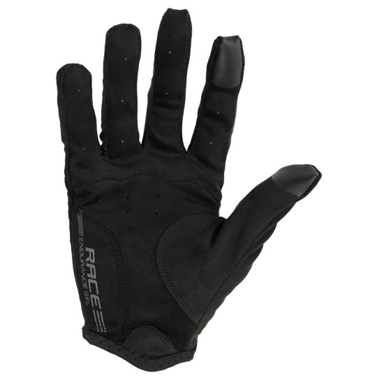 Ovládání telefonu v rukavicích? Žádný problém! Dotyková úprava na palci a ukazováčku umožňuje přesně ovládat jakékoliv chytré zařízení. Speciální vrstva tenkého tlumícího gelu "RACE ENDURACE GEL" na vnější části dlaně uleví rukám v nejvíce exponováné části a zároveň nijak neovlivňuje úchop řidítek. Rukavice jsou tak ideální pro jezdce, kteří očekávají dokonalý cit mezi rukou a řidítkem.• Svršek z elastické prodyšné síťoviny Lycra Mesh• Dlaň z tenké nesmekavé vrstvy broušené syntetické kůže• Tenká vrstva tlumícího gelu na vnější části dlaně• Dotyková úprava na palci a ukazováčku pro snadné ovládání telefonu• Elastický "klínek" pro snadné oblékání a jisté usazení