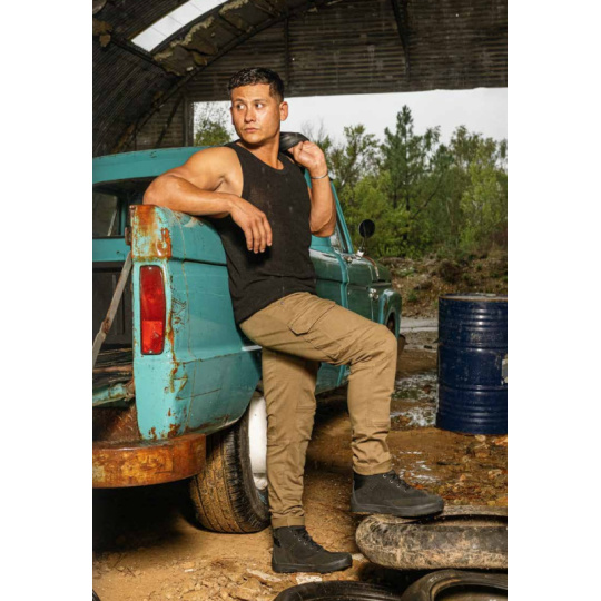 - Materiál: Vyrobeny ze strečové bavlny v kombinaci s kevlarovým vláknem (98% bavlna, 2% spandex)