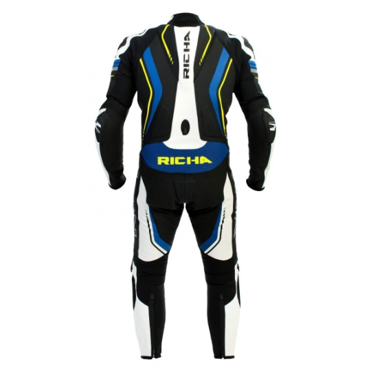 - Kožená kombinéza od belgického výrobce RICHA - Vyrobena z vysoce kvalitní 1,3mm hovězí kůže - Perforovaná kůže na hrudníku, pažích pro větší prodyšnost - Podšívka ze síťoviny - D30 chrániče ramen, loktů a kolen - Slim fit střih