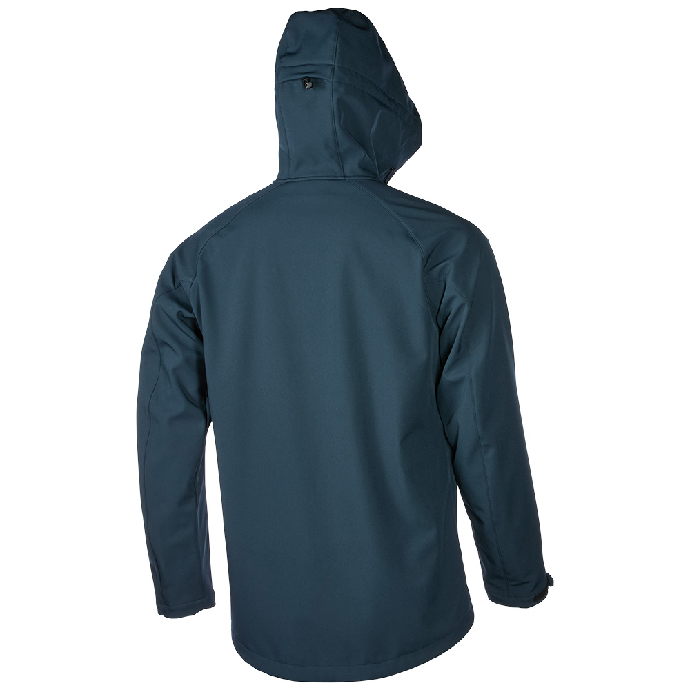 Softshellová bunda. 2 boční kapsy s krytem zipu, který zabraňuje zaseknutí zipu. Náprsní kapsa se zipem a krytem zipem, aby se zabránilo zaseknutí zipu. Přední zip s krytem zipu. Vodoodpudivá úprava s 1000 mm vodního sloupce. Prodyšnost 1 000 g. Manžety na suchý zip. Kapuce s tříbodovým nastavením.