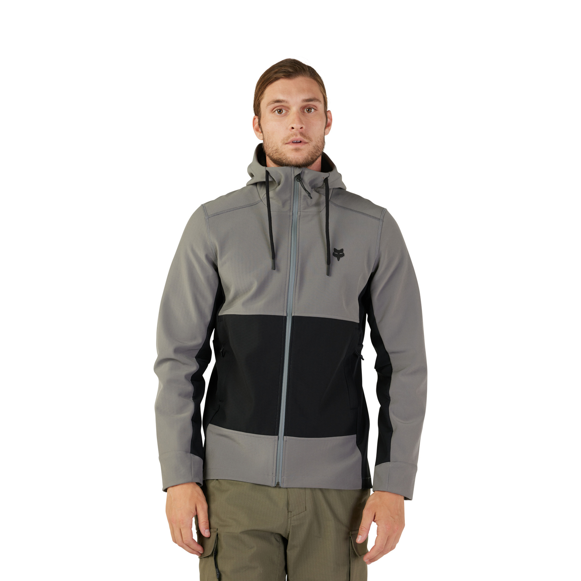 Pánská softshellová bunda Fox v pohodlném širším střihu ze 3-vrstvého voděodolného materiálu s hodnotou vodního sloupce 10K/5K. Rovný střih, hřejivá polyesterová podšívka, zapínání na přední voděodolný zip. Boční kapsy, stahování kapuce šňůrkou, silikonové logo Fox na hrudi. Odolný DWR zátěr materiálu proti větru a dešti. Složení materiálu: 94% polyester, 6% spandex; záda: 100% polyester. Gramáž 320g.