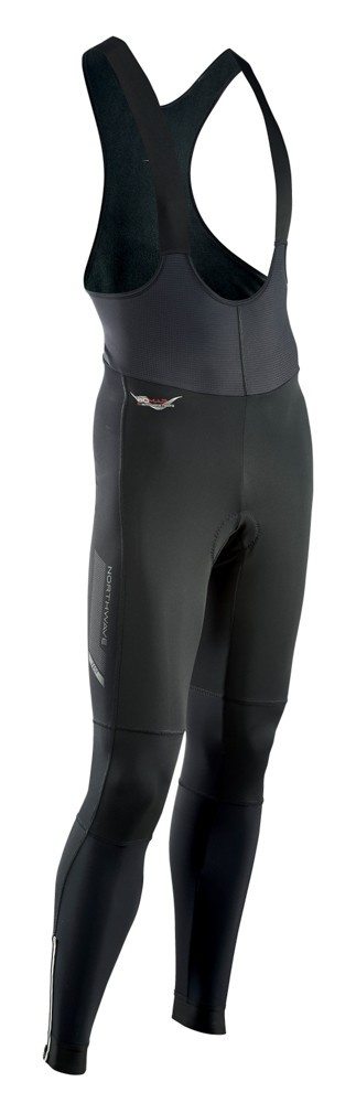 Pánské Bib šortky Northwave pro rozsah teplot -5/+10°C. Vodě a větru odolná membrána windproof H2O Flex v oblasti od pasu ke kolenům s hodnotami vodního sloupce 10.000mm/10.000g/24h. Biomap konstrukce s plochými švy poskytuje ideální střih bez omezení pohybu. 3-vrstvá Miti tkanina z kombinace prémiového lycra materiálu a polyesteru disponuje streč funkcí do všech 4 stran, boční a spodní panely jsou vyrobeny z poddajného materiálu Carvico Vuelta. Zvětšený, 4.5 cm široký kotníkový elastický úplet vespod s reflexním YKK zipem pro snadné navlékání. Provedení bez vnitřní vložky.