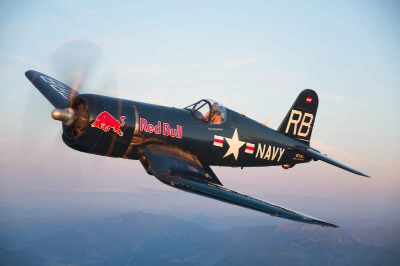 Láhev na vodu Red Bull The Flying Bulls s logem a nápisem. Stylové zpracování i barvy.