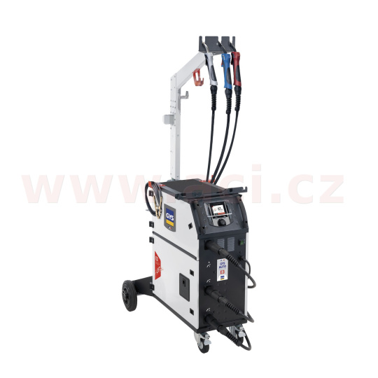 E3 GYS AUTO je 200A synergická jednofázová MIG/MAG svářečka s ovládáním v Češtině se třemi integrovanými podavači drátu, speciálně navržená pro karosárnu. Svářečka je vybavena velmi intuitivním barevným ovládacím panelem.