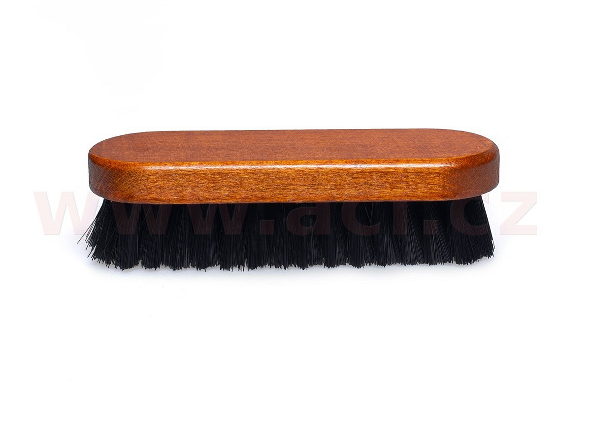 Náš kartáč má dřevěnou rukojeť a dobře padne do ruky, takže je pohodlný při práci. Syntetická vlákna jsou seskupena do hustých svazků a pevně uchycena do držadla.
