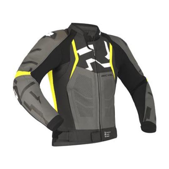 Moto bunda RICHA STRADALE fluo žluto/šedá kožená 52