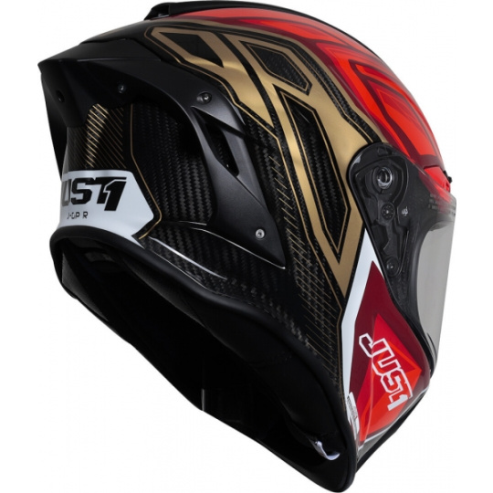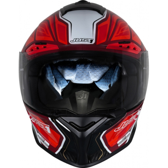 Přilba JUST1 J-GPR byla vyvinuta a navržena s primárním cílem vytvořit nejbezpečnější a nejpohodlnější profesionální celoobličejovou přilbu na silnici. Skořepina je vyrobena z uhlíkového vlákna – díky tomu je přilba neuvěřitelně lehká.
