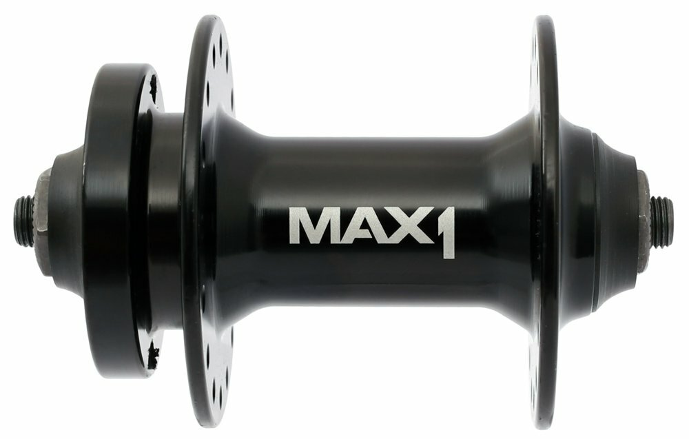 Přední náboj MAX1 Sport pro 6 děrové brzdové kotouče.- 32 děr- kuličková ložiska/ kónusy- osa: 9 x 108 x 100 mm- materiál: Al hliník- hmotnost: 261 g- baleno v sáčku- černý- balení neobsahuje rychloupínák