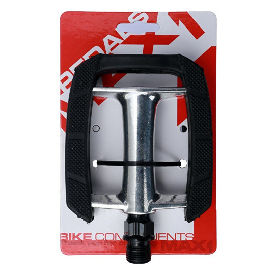 Moderní hliníkové pedály MAX1 s odrazkami- kuličková ložiska- protiskluzová gumová nášlapná plocha- hmotnost 1 páru: 278 g- rozměr 105 X 68 mm- osa 9/16”, Cr-Mo- baleno na závěsné kartě s EAN, kód a názevKompletní sortiment produktů na MAX1.cz.Výrobce: Cyklomax, spol. s r.o., Pardubická 504, 533 52 Srch. E-mail: info@cyklomax.cz