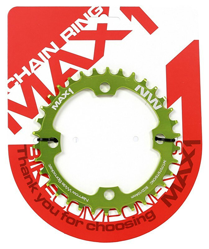 Převodník MAX1 Narrow Wide pro montáž na kliky s roztečí 104mm.Tvar zubů zajišťuje hladký chod a stabilitu řetězu s převody 1x10 nebo 1x11, převodník je tedy možné použít jak na 10-ti, ale i 11-ti rychlostní řazení.Specifikace:- CNC způsob zpracování- Elox povrchová úpravaVíce na: MAX1.CZ