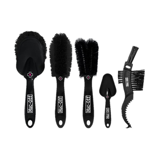 MUC-OFF 5X BRUSH SET je sada kartáčů určená k čištění rámů a všech jednotlivých částí jízdních kol, včetně těch s choulostivým povrchem.Umožňuje odstranění špíny i z těžko dostupných míst.Všechny kartáče se vyznačují vysokou mechanickou odolností i tvrdostí štětin. SADA OBSAHUJE:MUC-OFF CLAW BRUSH má kvalitní tříhlavovou konstrukci s nylonovými štětinami různé délky. Je vhodný zejména na řetězy a ozubená kola, kazety atd.MUC-OFF DETAILING BRUSH je vhodný na čištění nábojů kol, ozubených kol a různých úzkých míst, např. v oblasti koruny předních teleskopů. Pevné a masivní madlo s protiskluzovou úpravou a trvanlivé a velmi husté štětiny jsou předpokladem dlouhé životnosti kartáče. Kartáč má dále pogumované kontaktní hrany, aby nedošlo k poškození citlivých povrchů.MUC-OFF SUPER SOFT WASHING BRUSH má konečky z ultra pevných štětin řezaných laserem pro čištění i těch nejcitlivějších povrchů. Hlava je ještě větší než u předchozího kartáče (90 mm) a štětinky jsou ještě hustěji u sebe. Pevná, dlouhá a nárazu odolná rukojeť s protiskluzovou úpravou dělá z kartáče skutečně účinný nástroj při odstraňování i té největší špíny. Navíc jsou kontaktní hrany pro zvýšení šetrnosti použití kartáče pogumované.MUC-OFF TWO PRONG BRUSH má tuhé, nárazu odolné držadlo a trvanlivé nylonové štětiny. Je ideální na čištění paprsků kola, disků, vidlic, pérování, opěr atd. Je vhodným pomocníkem při čištění obtížně dosažitelných míst.MUC-OFF WHEEL & COMPONENT BRUSH má oválnou zužující se hlavu, jejíž tvar usnadňuje čištění v oblasti paprsků kol, ráfků a jiných obtížněji dostupných částí. Jemné, ale zároveň pevné štětinky jsou schopné z těchto míst rychle a účinně odstranit špínu. Pevná, pogumovaná a nárazu vzdorná rukojeť ještě více usnadňuje práci.Distributor: Cyklomax, spol. s r.o., Pardubická 504, 533 52 Srch. E-mail: info@cyklomax.cz