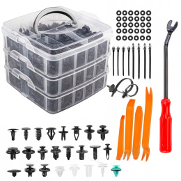 Tato sada spon, čepů a úchytů pro automobilové čalounění obsahuje 845 kusů. Je univerzálním řešením pro opravy a montáž v jakémkoli vozidle. Obsahuje různé velikosti a typy upevňovacích prvků vhodné pro většinu značek automobilů. Součástí je praktické páčidlo pro snadné sejmutí čalounění bez rizika poškození. Vše je uloženo v přehledné krabici s přihrádkami pro snadné skladování a rychlý přístup.