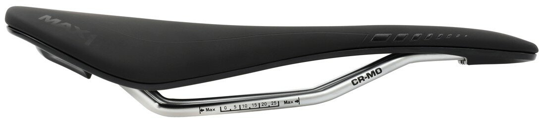 Závodní sedlo MAX1 Evo s Cr-Mo ližinami, nylonovou platformou a ergonomickým otvorem ve střední části.Ergonomický středový prolis s otvorem zvyšuje komfort a redukuje tlak v pánevní oblasti. Výplň sedla velmi dobře tlumí otřesy a zajišťuje pohodlí. Jednoduchá údržba a voděodolný povrch.• rozměry: 280×140 mm• platforma: nylon• hmotnost: 270 g• barva: matná černá/lesklý design