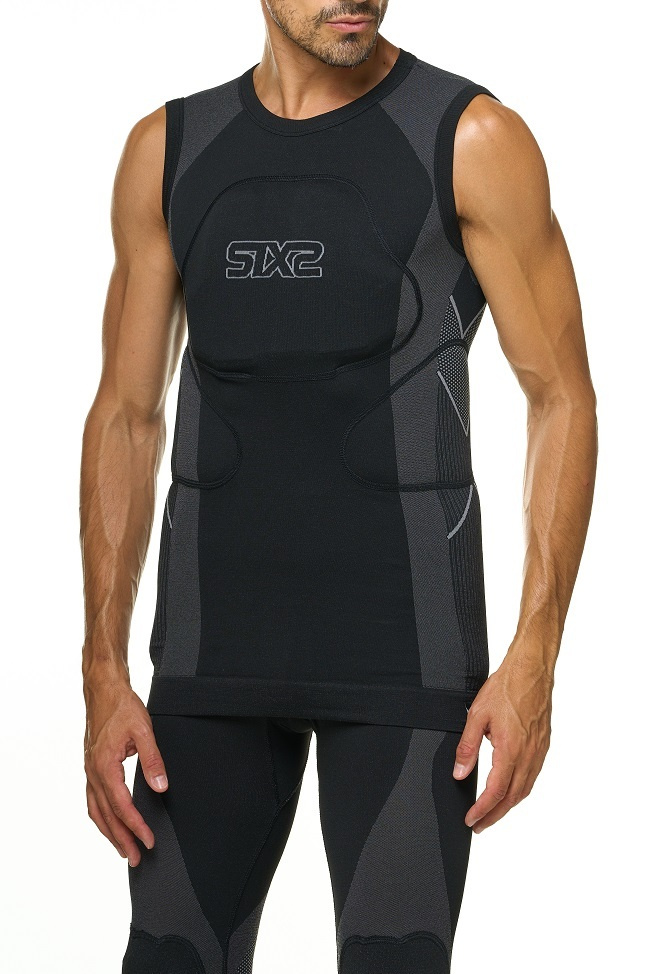 Tričko bez rukávů PRM SMX kombinuje inovativní systém SIXS Pro-Tech s pokročilým komfortem a prodyšností. Je vybaveno praktickými kapsami pro uložení odnímatelných chráničů a poskytuje bezpečnost v kritických oblastech, aniž by omezovalo volnost pohybu. Tričko je vybaveno integrovanými chrániči páteře, hrudi a žeber, které jsou bezpečně uloženy ve speciálních kapsách. Tričko PRM SMX je vyrobeno z patentované tkaniny Carbon Underwear® od společnosti SIXS a zajišťuje výjimečnou regulaci vlhkosti a tepla, takže vás udrží v suchu a pohodlí za různých teplot. Inovativní systém absorpce nárazů umožňuje, aby ochranné prvky zůstaly měkké a pružné při běžném pohybu, ale při nárazu okamžitě ztvrdly a poskytly spolehlivou ochranu před zraněním. Ať už se věnujete fyzicky náročným sportům nebo absolvujete dlouhé tréninky, prodyšný materiál zajišťuje optimální proudění vzduchu, zabraňuje přehřátí a snižuje riziko svalových zranění. Přiléhavý střih zvyšuje volnost pohybu, díky čemuž je toto tričko s krátkými rukávy ideální základní vrstvou pro maximální výkon a ochranu. Splňuje normu EN 1621, chránič hrudi Level 1, chránič páteře Level 2, chrániče žeber Level 1. Pro údržbu a prodloužení životnosti doporučujeme použití originálního pracího gelu Resolvwear Fragrance nebo Resolvwear Active. Při praní a údržbě dodržujte pokyny výrobce dle symbolů údržby na cedulkách oděvů.