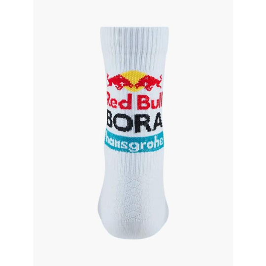 Sportovní ponožky cyklistického týmu Red Bull Bora Hansgrohe. Bílá barva doplněná logem týmu Red Bull Bora. Krásné barvy, pohodlné na nošení.