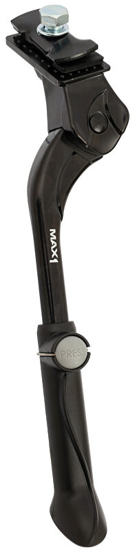 Nastavitelný středový stojan MAX1 pro dětská jízdní kola. - tělo z hliníkové slitiny- gumová podložka- 2 délky šroubů v balení (delší 6 hranný a kratší imbusový)- nastavení velikosti bez použití nářadí- pro kola 16"-20"Montáž: doporučujeme montovat v odborném servisu.Montáž- Pokud má rám kola přípravu pro montáž stojánku, doporučujeme použít kratší šroub (M10x20), než je standartně dodáván se stojánkem (M10x50).- Pokud rám nemá přípravu montujeme na zadní stavbu včetně podložky.- Lehce dotáhněte a zkontrolujte zda stojánek nezasahuje do výpletu zadního kola a do trajektorie pohybu nohy při šlapání.- Stojánek je důležité řádně dotáhnout, aby nedošlo k uvolnění a případné nehodě. - Následně uvolněte vysouvací nožičku na sklopené noze stojánku a umístíme do optimální polohy, aby kolo samo stálo na stojánku.- Nožičku řádně dotáhneme.Více na: MAX1.CZ