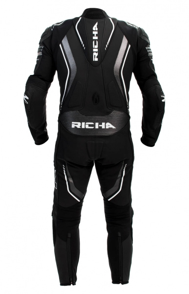 - Kožená kombinéza od belgického výrobce RICHA - Vyrobena z vysoce kvalitní 1,3mm hovězí kůže - Perforovaná kůže na hrudníku, pažích pro větší prodyšnost - Podšívka ze síťoviny - D30 chrániče ramen, loktů a kolen - Slim fit střih