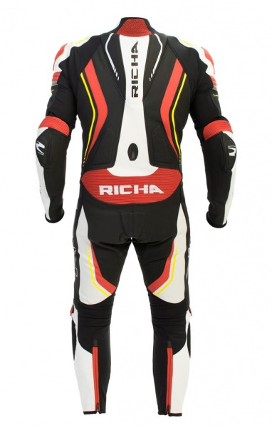 - Kožená kombinéza od belgického výrobce RICHA - Vyrobena z vysoce kvalitní 1,3mm hovězí kůže - Perforovaná kůže na hrudníku, pažích pro větší prodyšnost - Podšívka ze síťoviny - D30 chrániče ramen, loktů a kolen - Slim fit střih