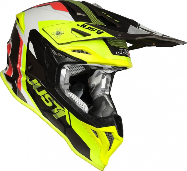 Moto přilba JUST1 J39 REACTOR matná neonově žluto/červeno/titanová + 2 ks brýle ARNETTE zdarma