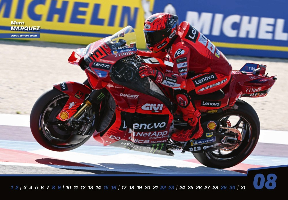 Nástěnný kalendář MCF MOTO GP s fotografiemi MOTO GP jezdců, který se může krásně vyjímat klidně i ve vašem pokoji, kanceláři, pracovně, dílně či garáži, a to právě po celou následující sezonu 2026. Malá ochutnávka překrásných fotografií níže ve fotogalerii!