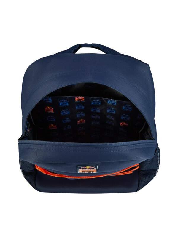 Fanouškovský batoh KTM Red Bull Racing v barvách kolekce Essential. Tmavě modré zpracování doplněné logem KTM Red Bull Racing a oranžovými prvky. Design ESSENTIAL Prostor 18 litrů Hlavní i přední kapsa na zip Nastavitelné popruhy