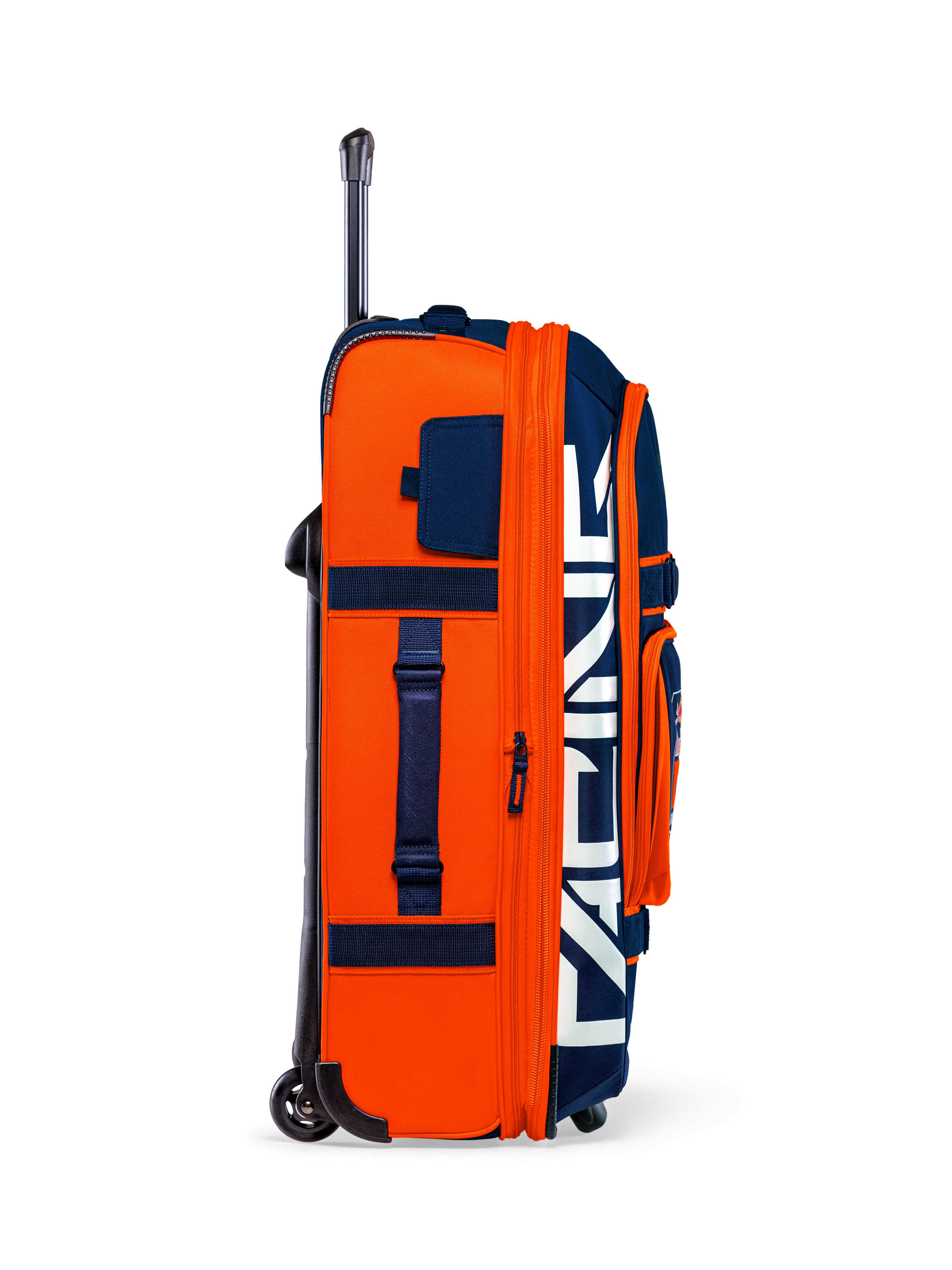 Velký kufr KTM Red Bull Racing z oficiální kolekce. Skvělý parťák na časově náročné a časté cestování. Cestovní kufr KTM Red Bull Racing v luxusním provedení. Loga sponzorů Teleskopická rukojeť Kolečka Vyztužené ližiny na zadní straně Úložný prostor Několik vnitřních i vnějších kapes