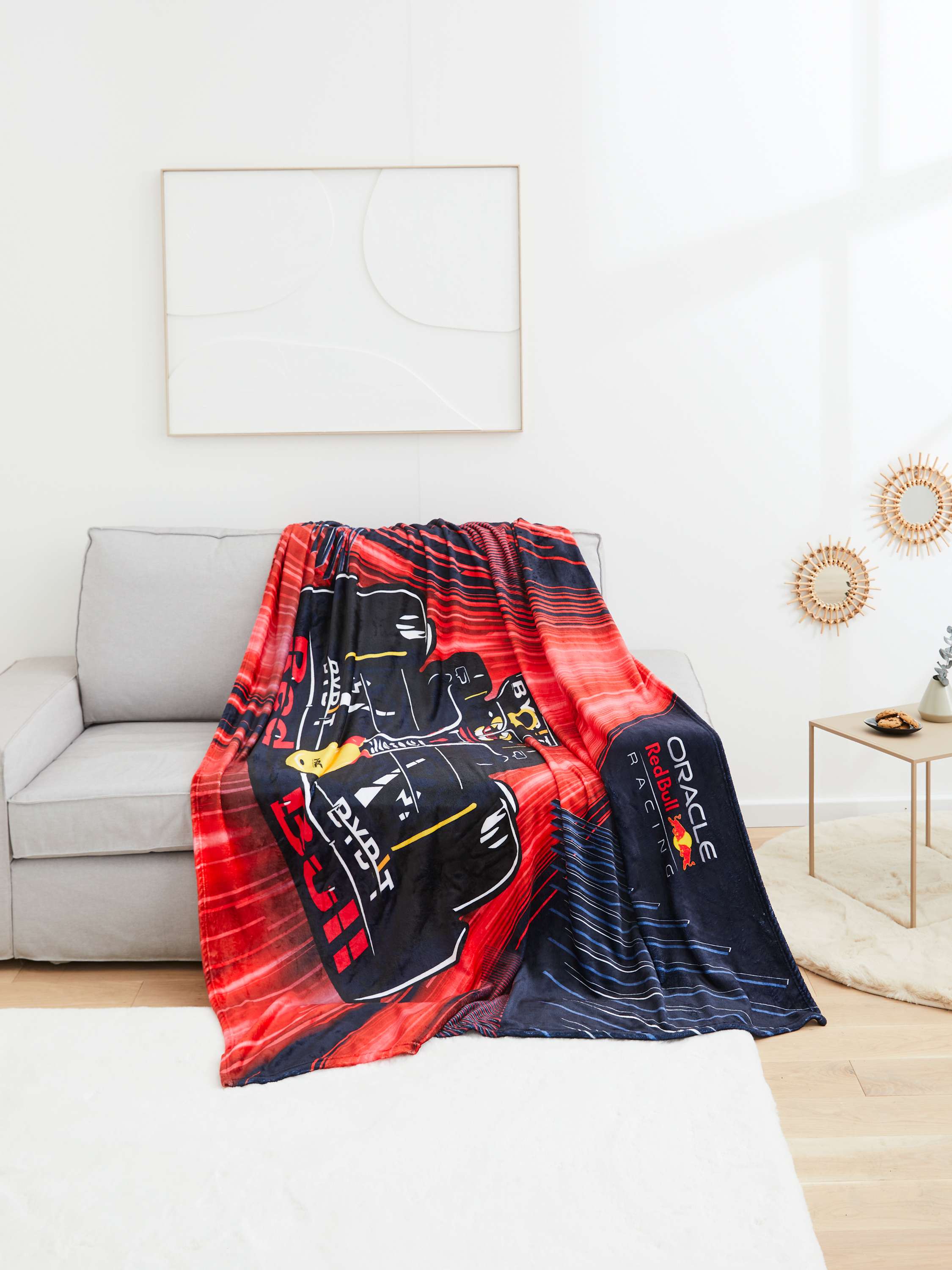 Velká deka Oracle Red Bull Racing z oficiální kolekce. Objevte luxusní deku pro všechny fanoušky Formule 1. Velká deka Red Bull Racing s motivem Formule Maxe Verstappena. Příjemný materiál na dotek.