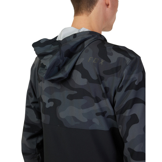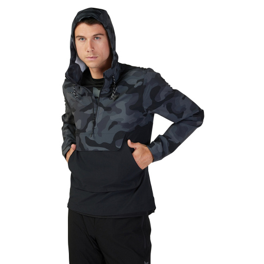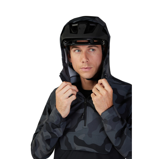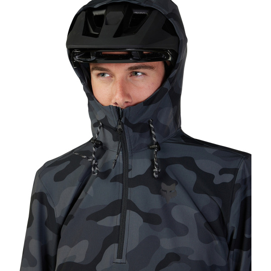 Pánská cyklistická bunda Fox Ranger Wind Pullover. Jarní/podzimní bunda, sportovní bunda. Čtyřsměrně strečový materiál se roztahuje ve všech čtyřech směrech, podporuje pohyblivost a neomezuje pohybu, odolná voděodpuzující DWR úprava, lehce sbalitelná bunda, zapínání na částečný zip, kapuce s dvoubodovým stahováním, kapuce kompatibilní s helmou, vpředu kapsa klokánka a kapsa na suchý zip, částečně pružné manžety, jednobodové stahování spodního lemu bundy ,boční zip pro snadnější oblékání.