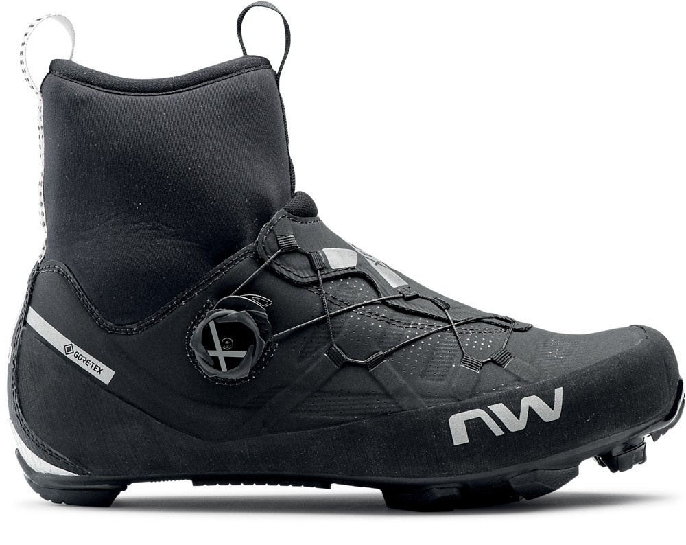 Pánské XC tretry Northwave s karbonovou podrážkou s tvrdostí 12/15. Svrchní část je vyrobena patentovanou technologií Ultra light X-Frame pro omezení nežádoucích tlaků a také pro ideální přenos sil. Utahování rychlosystémem SLW2 s možností jemného nastavení. Neoprenový kotníkový úplet Easyfit Climaflex s Gore-Tex Rattler membránou neomezuje pohyb a chrání před nepříznivými vlivy. Vnitřní 4-vrstvá vložka Arctic 4L (kombinace EVA materiáu a hliníku) se stará o izolaci tělesného tepla, reflexní detaily po obvodu pro lepší viditelnost. Hmotnost 445g. Velikost uvedena v EU číslování.