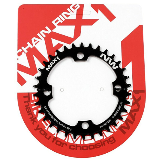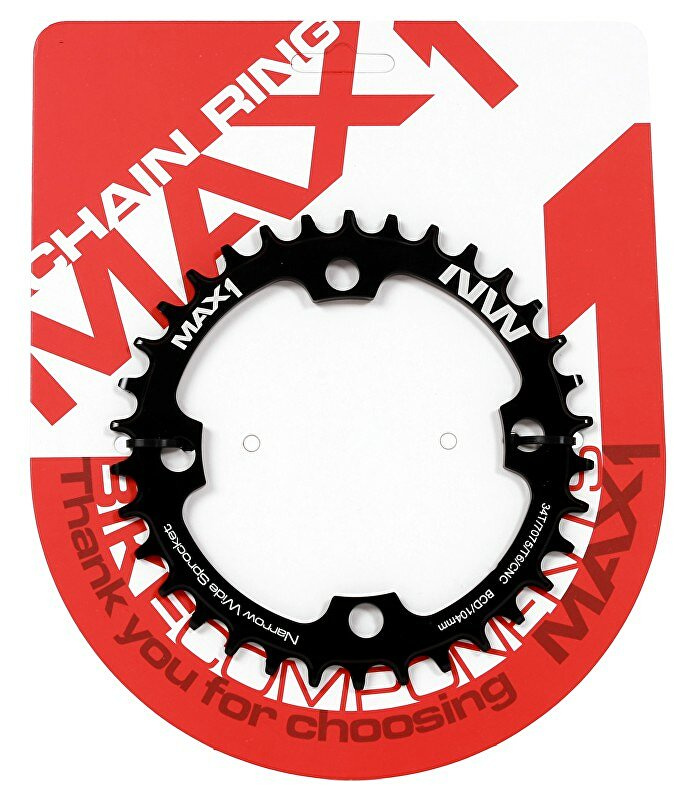 Převodník MAX1 Narrow Wide pro montáž na kliky s roztečí 104mm.Tvar zubů zajišťuje hladký chod a stabilitu řetězu s převody 1x10 nebo 1x11, převodník je tedy možné použít jak na 10-ti, ale i 11-ti rychlostní řazení.Specifikace:- CNC způsob zpracování- Elox povrchová úpravaVíce na: MAX1.CZ