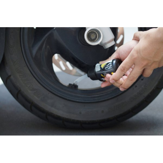 Tato extrémně kompaktní a lehká sada na opravu pneumatik je určena pro skútry a malé motocykly. Navzdory své velikosti poskytuje kompresor časy nafouknutí jen několik minut. Přiložený 100 ml Active Seal® postačí k opravě propíchnutí až 6 mm v pneumatikách skútrů a motocyklů. Verze VO se dodává s měkkou lahví, která vyžaduje ruční vmáčknutí těsnící hmoty do pneumatiky.