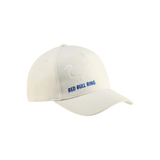 Tmavě bílá kšiltovka Red Bull Ring s velkým logem býka na přední straně. Motiv zdobí vyšitý nápis Red Bull Ring. Nastavitelná