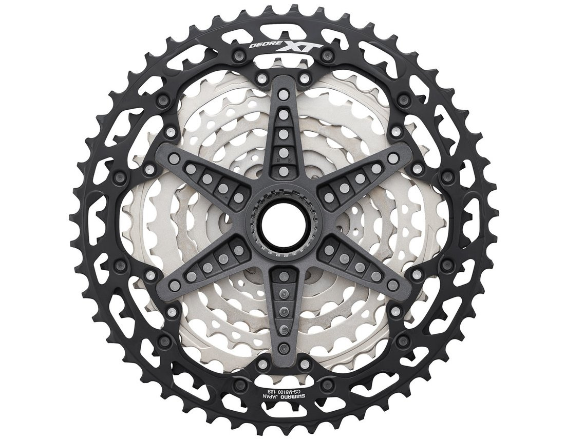 Zcela nová kazeta z řady Deore XT nesoucí označení CS-M8100 s 12 pastorky v rozsahu 10-51 zubů (10-12-14-16-18-21-24-28-33-39-45-51) nabízí díky technologii Hyperglide+ o 30% rychlejší a plynulejší řazení. Základem konstrukce kazety Shimano Deore XT M8100 je lehký a pevný unašeč z alu slitiny a pastorky z oceli a alu slitiny. Díky konstrukci a volbě materiálu se u této kazety dosáhlo hmotnosti jen 470 g.