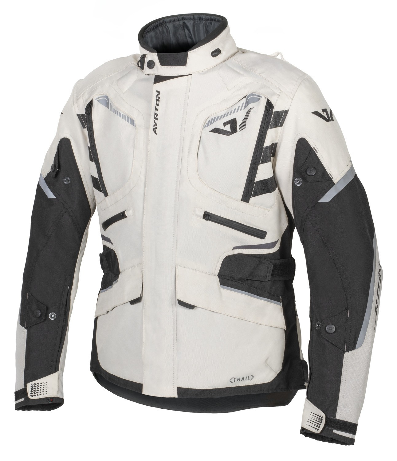 Dlouhá, cestovní, textilní bunda TRAIL disponuje CE certifikovanými protektory LITE PRO, které jsou pružné, lehké, prodyšné a díky malé tloušťce i nenápadné. Vnější polyester obšívka bundy se systémem ventilačních otvorů je doplněna o vnitřní odnímatelné vrstvy v podobě pláštěnky a termo vložky s plnivem z dutých vláken, která ochrání během chladného počasí. Krátký zip YKK® #8 umožňuje propojení bundy a kalhot.