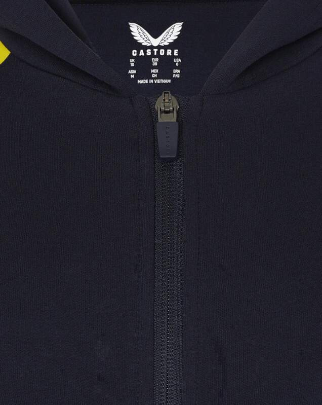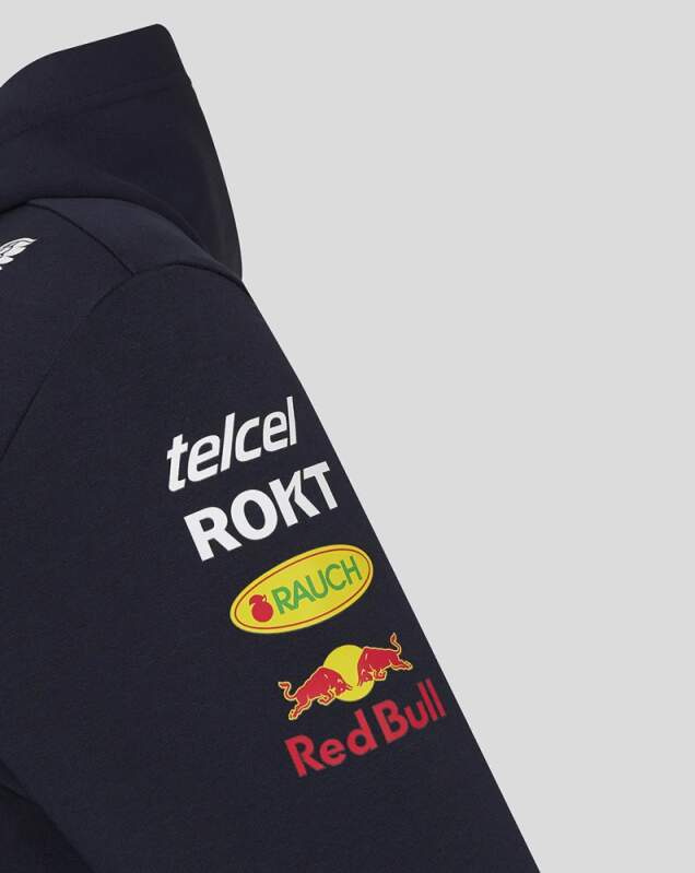 Nová dámská mikina s kapucí na zip Red Bull Racing F1 nošená jezdci a členy týmu v sezóně Formule 1. Dámská mikina s kapucí na zip Red Bull Racing F1 doplněná logy sponzorů od výrobce Castore. Pohodlná na nošení, krásné barvy.  Zahřeje Kapuce Boční kapsy