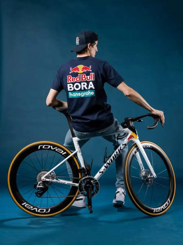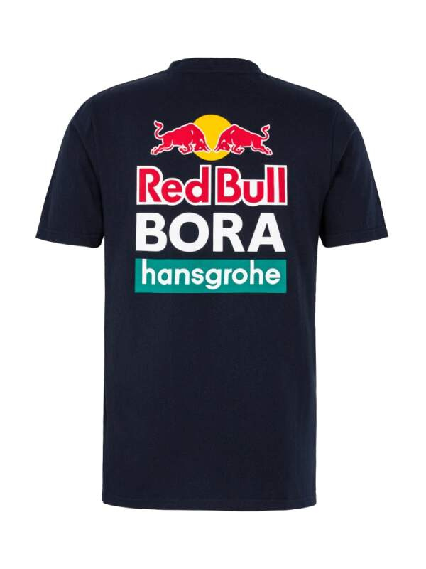 Bavlněné tričko cyklistického týmu Red Bull Bora Hansgrohe s velkým logem na zadní straně. Tmavě modré provedení, krásné zpracování i barvy.