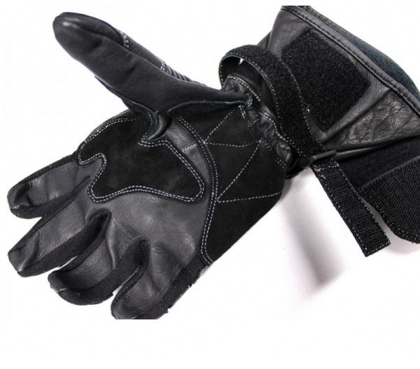 Kožené rukavice, dlouhé s chrániči zajišťují dokonalý komfort a pohodlí.