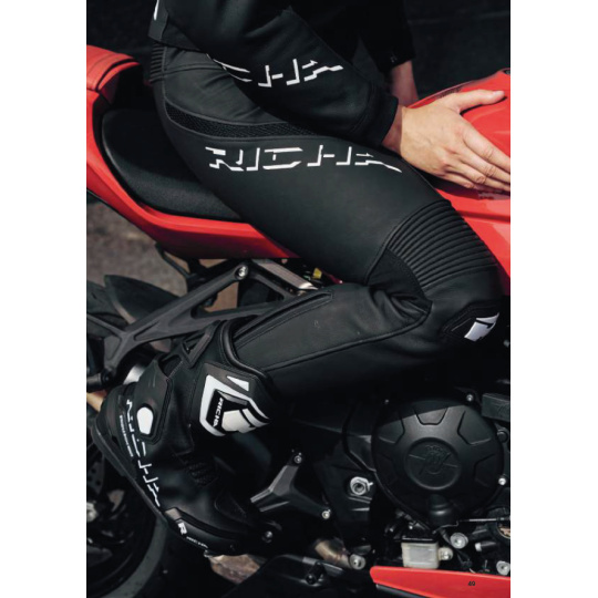 - Kožené motocyklové kalhoty Stradale jsou navrženy tak, aby je bylo možné v případě potřeby integrovat s volitelnými kolenními chrániči Richa a koženými chrániči (prodávají se samostatně)