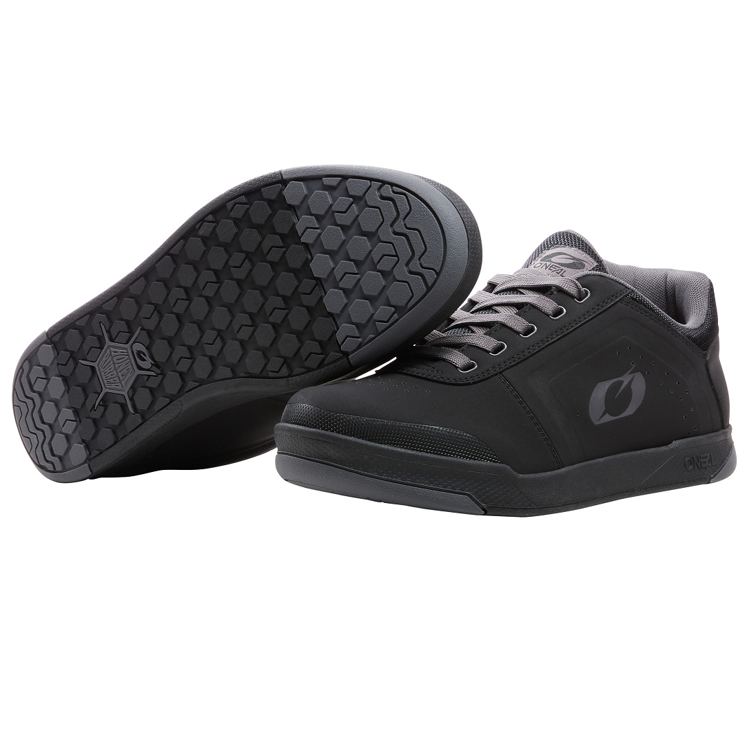 Boty pro jízdu s flat pedály. Dokonalá rovnováha mezi přilnavostí a možností změny polohy nohy díky O'Neal Honey Rubber® podrážce se šestihranným vzorkem. Provedení boty se zvýšeným vnitřním kotníkem chrání před nárazem do kliky při šlapání. Konstrukce podrážky a svršku boty poskytuje dokonalou kombinaci tuhosti a pružnosti pro maximální efektivitu šlapání a komfort. Odolný a lehký PU svršek Systém zapínání na tkaničky pro ležérnější vzhled a zároveň bezpečné a pevné utažení během jízdy. Vyjímatelná a vyměnitelná stélka. Zesílená špička pro lepší ochranu. Dodatečné boční prošívání podrážky pro zpevnění a zvýšení odolnosti.