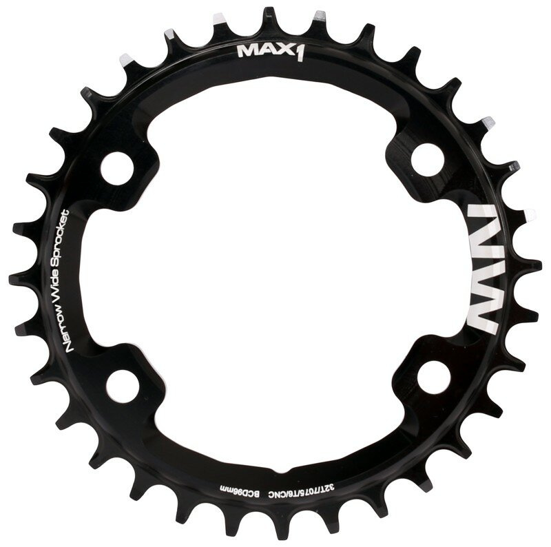 Převodník MAX1 Narrow Wide pro montáž na kliky s roztečí 96 mm.Tvar zubů zajišťuje hladký chod a stabilitu řetězu s převody 1x11/12, převodník je tedy možné použít jak na 11ti, ale i 12-ti rychlostní řazení.Specifikace:- CNC způsob zpracování- Elox povrchová úprava- kompatibilní Shimano Deore, SLX, XT a XTR