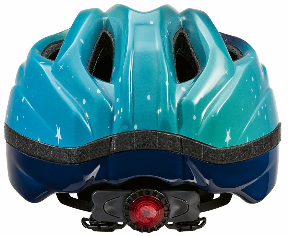 dětská cyklistická přilba s integrovanou zadní blikačkou, síťkou proti hmyzu a bezpečnostní certifikací EN 1078, vyrobená v Německu...