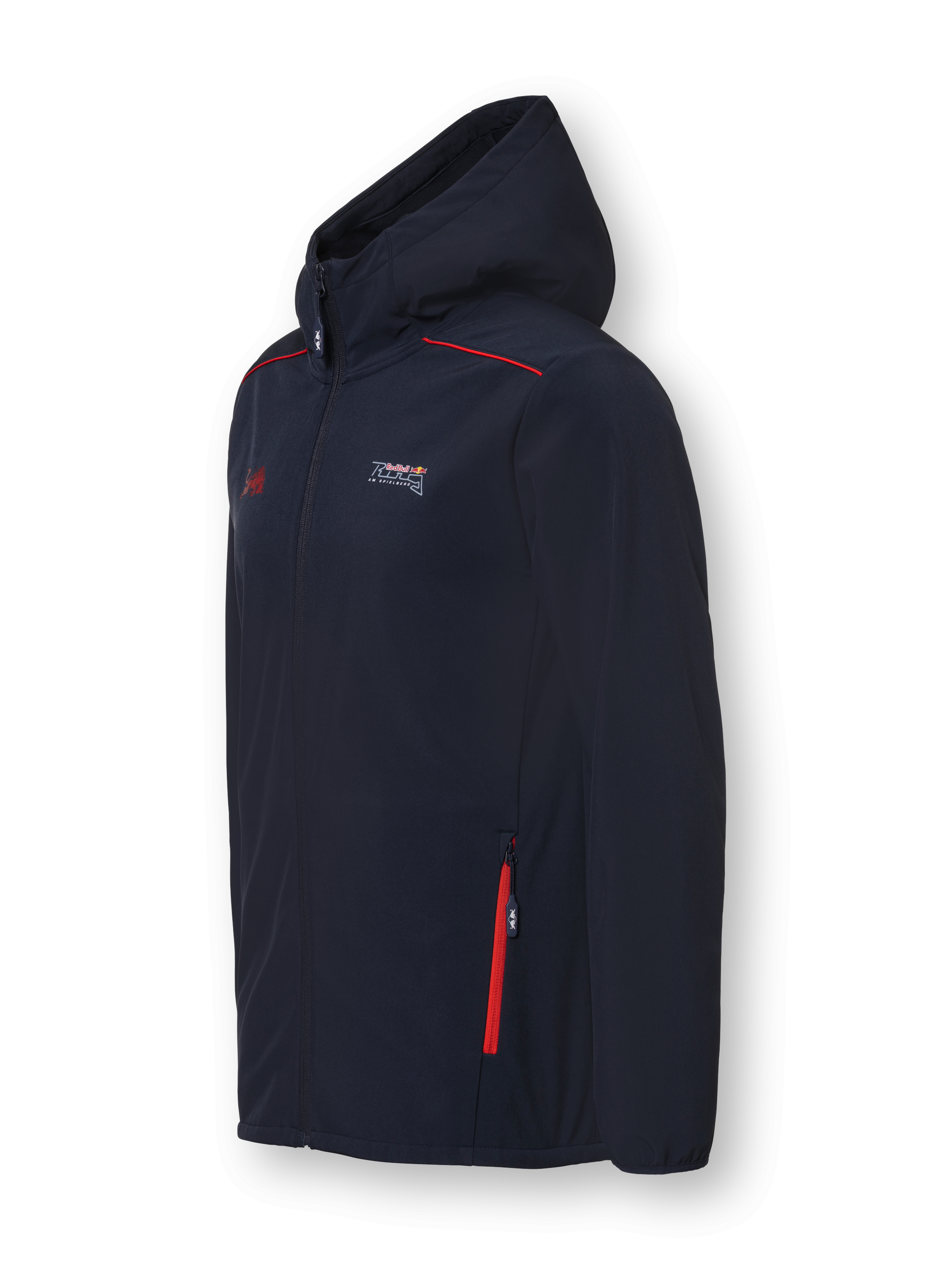 Pánská softshell bunda Red Bull Ring z oficiální kolekce. Luxusní bunda Red Bull Ring s kapucí. Skvělý doplněk na závodní dráhu. Kapuce Zapínatelné boční kapsy Loga Red Bull Ring Ochrana proti větru i dešti
