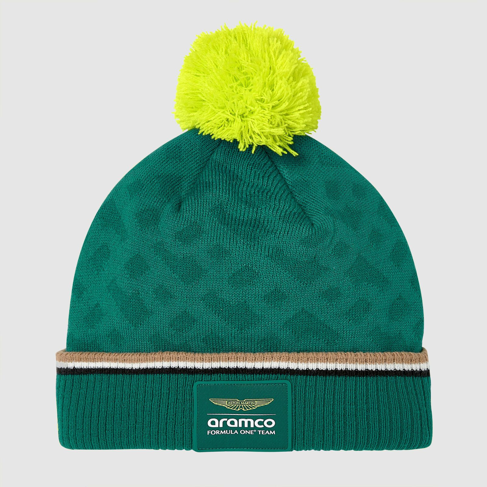 Týmová zimní čepice Aston Martin F1 Team v nových barvách. Zimní čepice Aston Martin F1 doplněná 3D logem týmu a sponzora. Týmová loga, krásné barvy, pohodlná na nošení.
