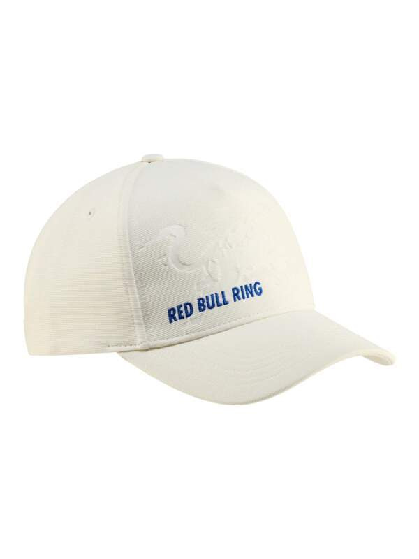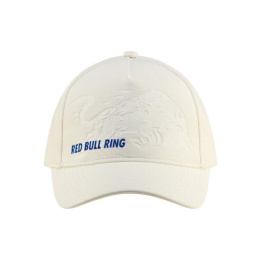 Tmavě bílá kšiltovka Red Bull Ring s velkým logem býka na přední straně. Motiv zdobí vyšitý nápis Red Bull Ring. Nastavitelná